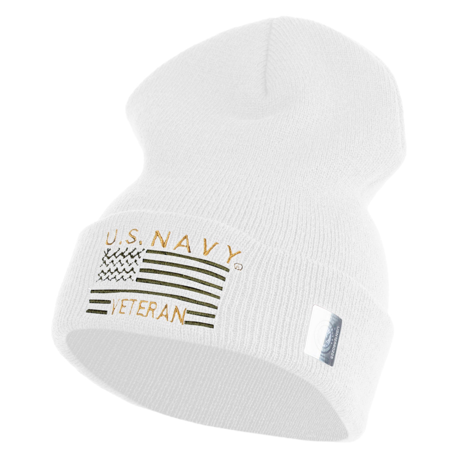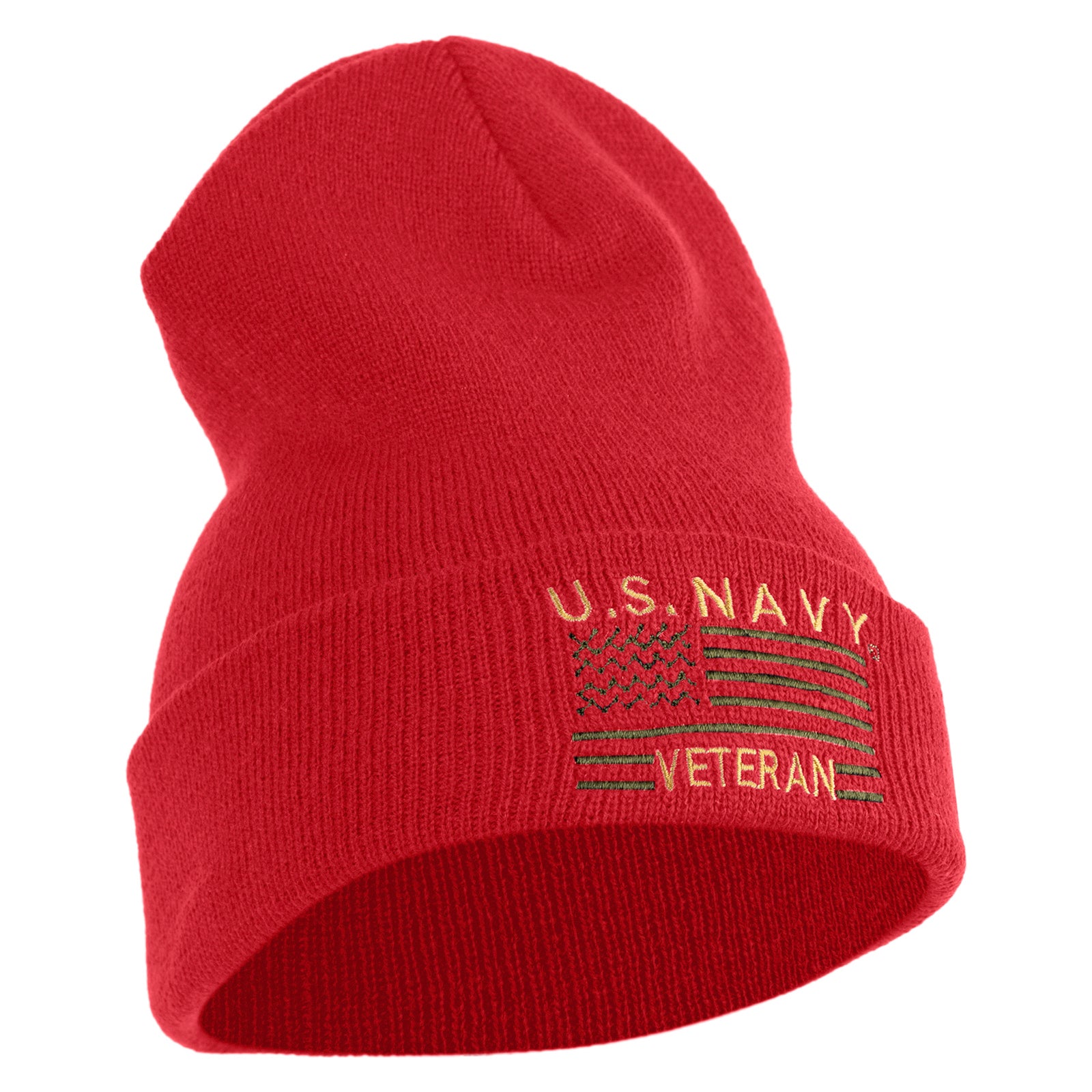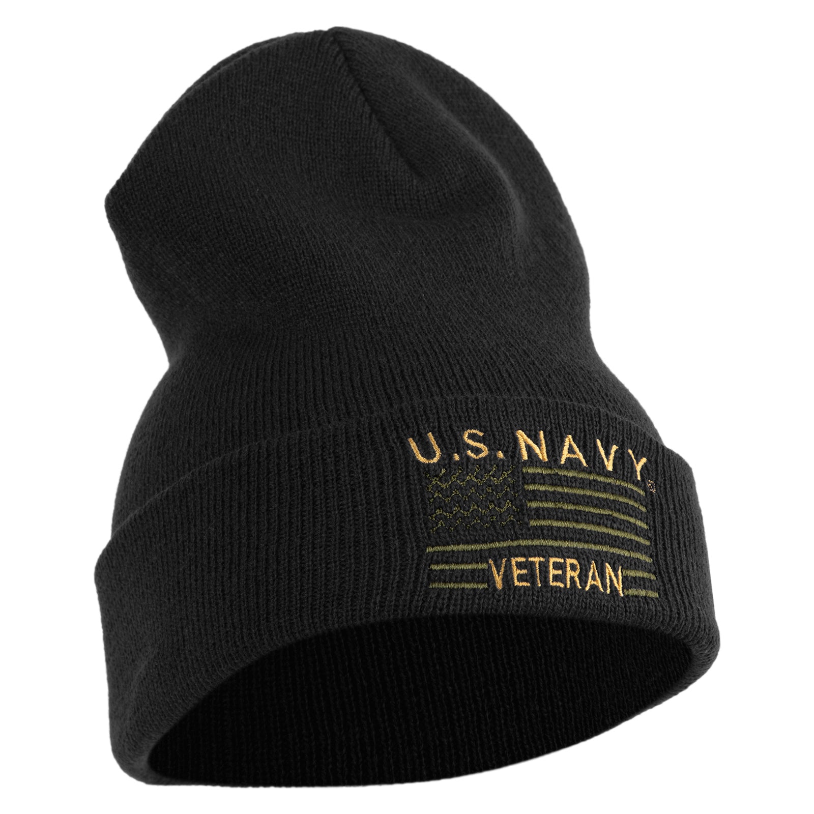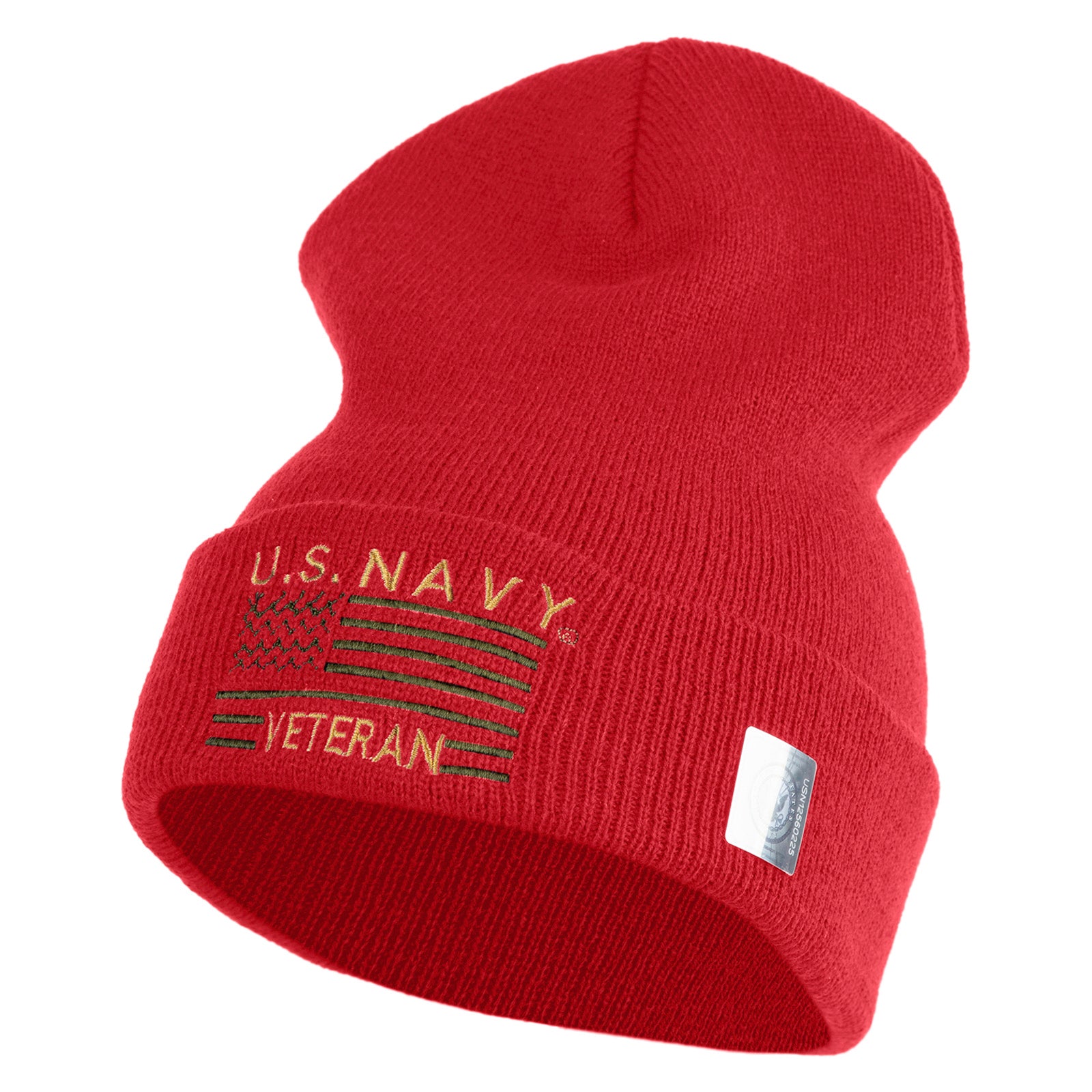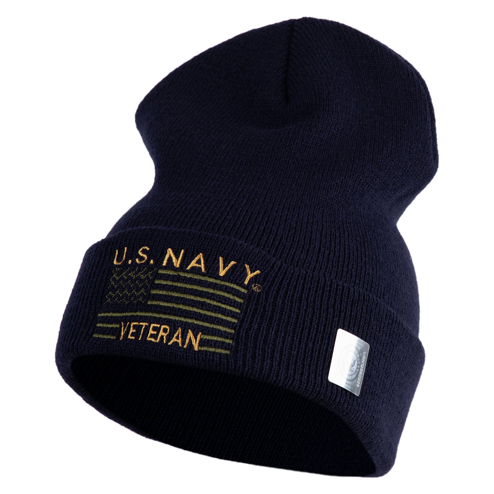 Title, U.S. Navy Veteran Embroidered 12 inch Cuffed Knit YP Long Beanie