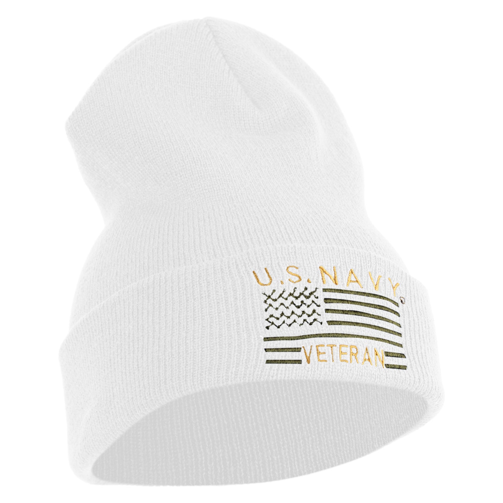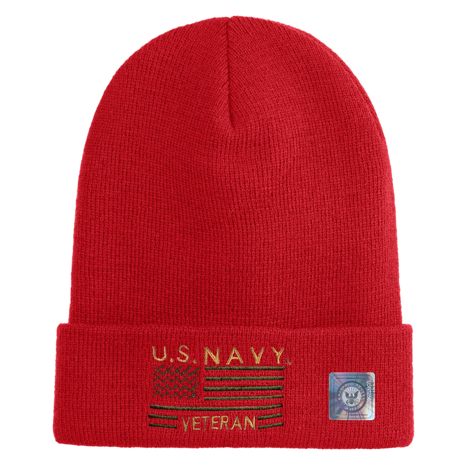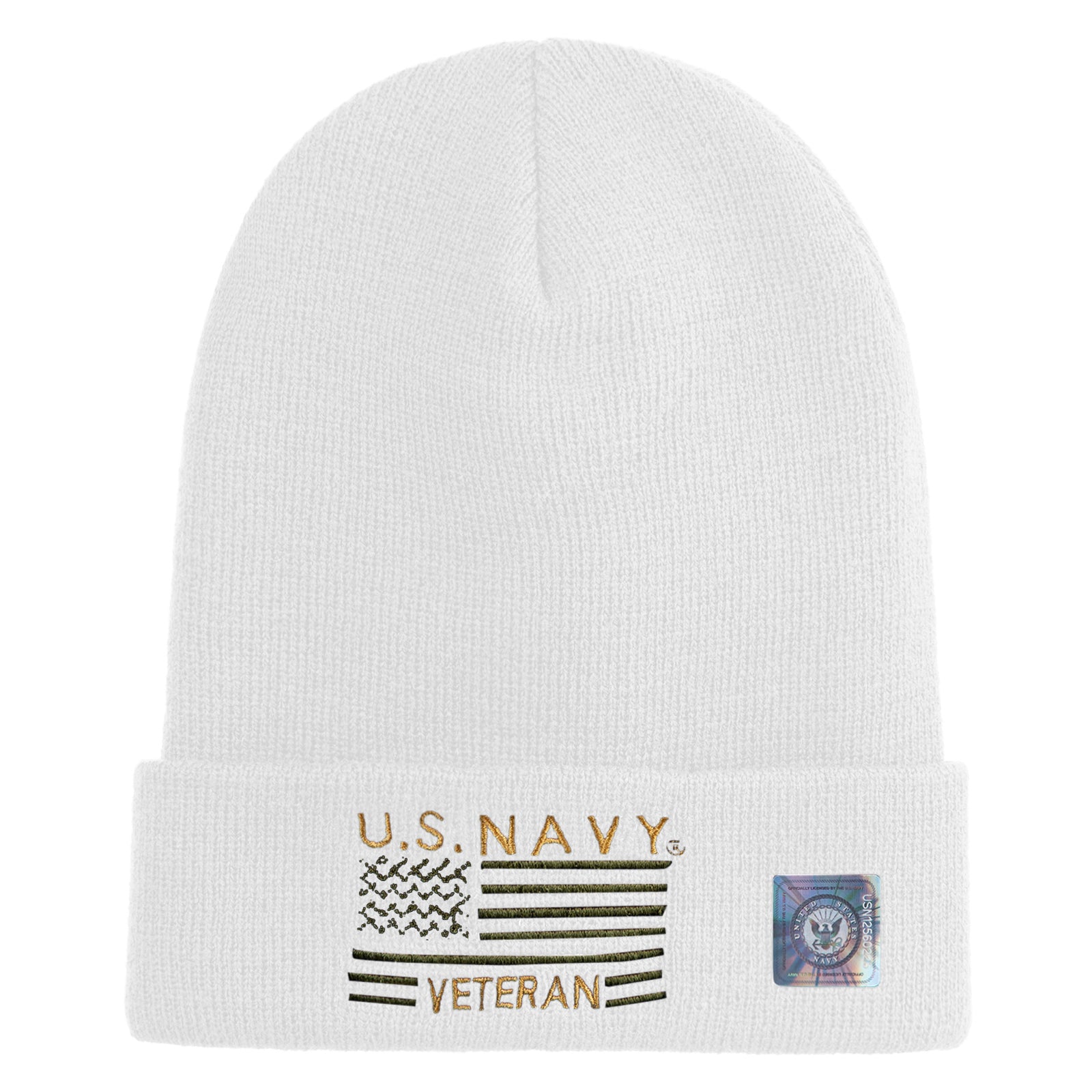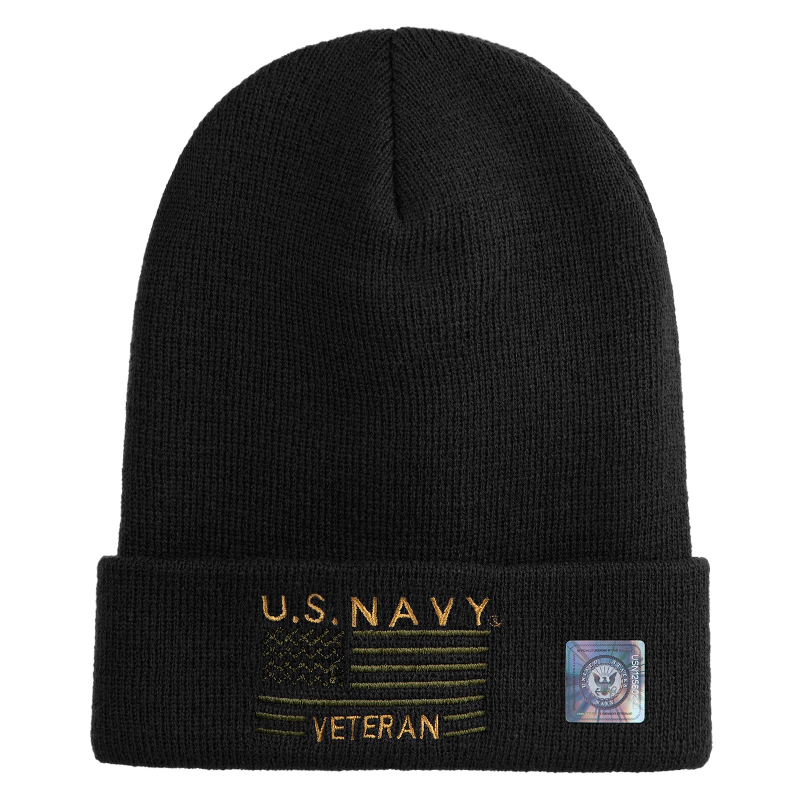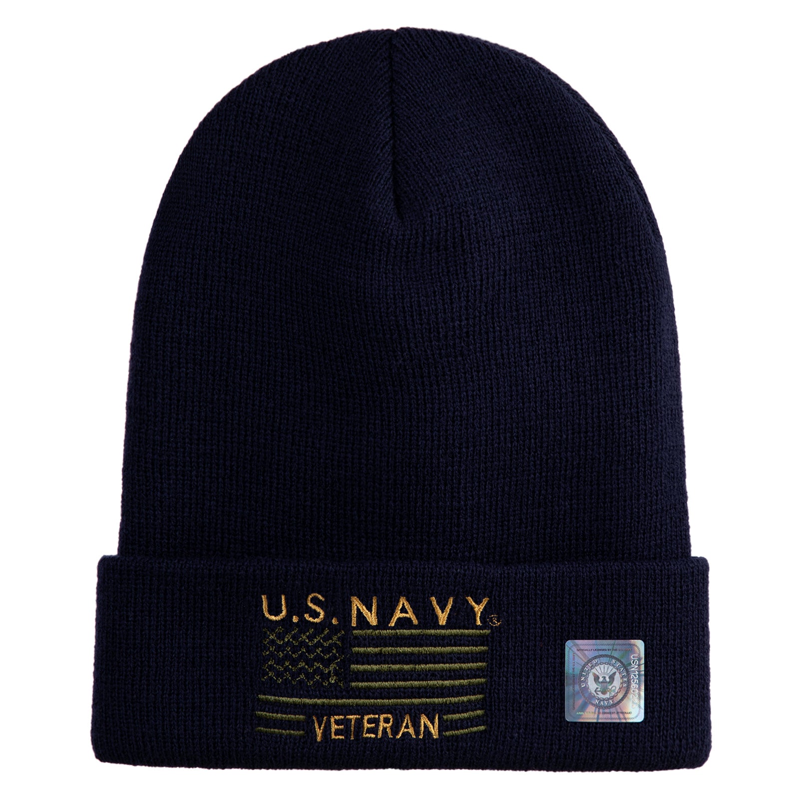 Title, U.S. Navy Veteran Embroidered 12 inch Cuffed Knit YP Long Beanie