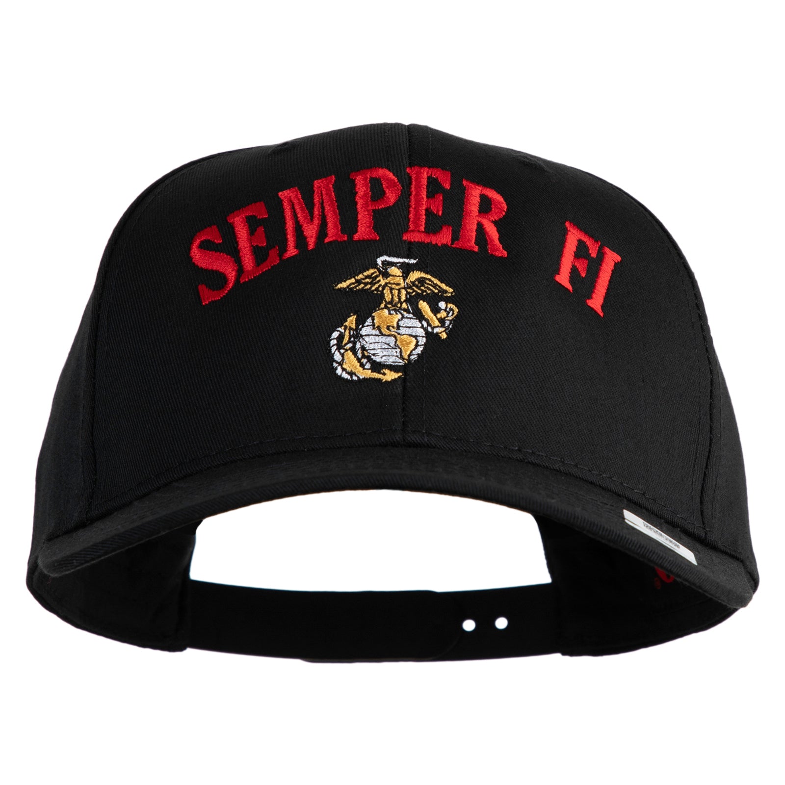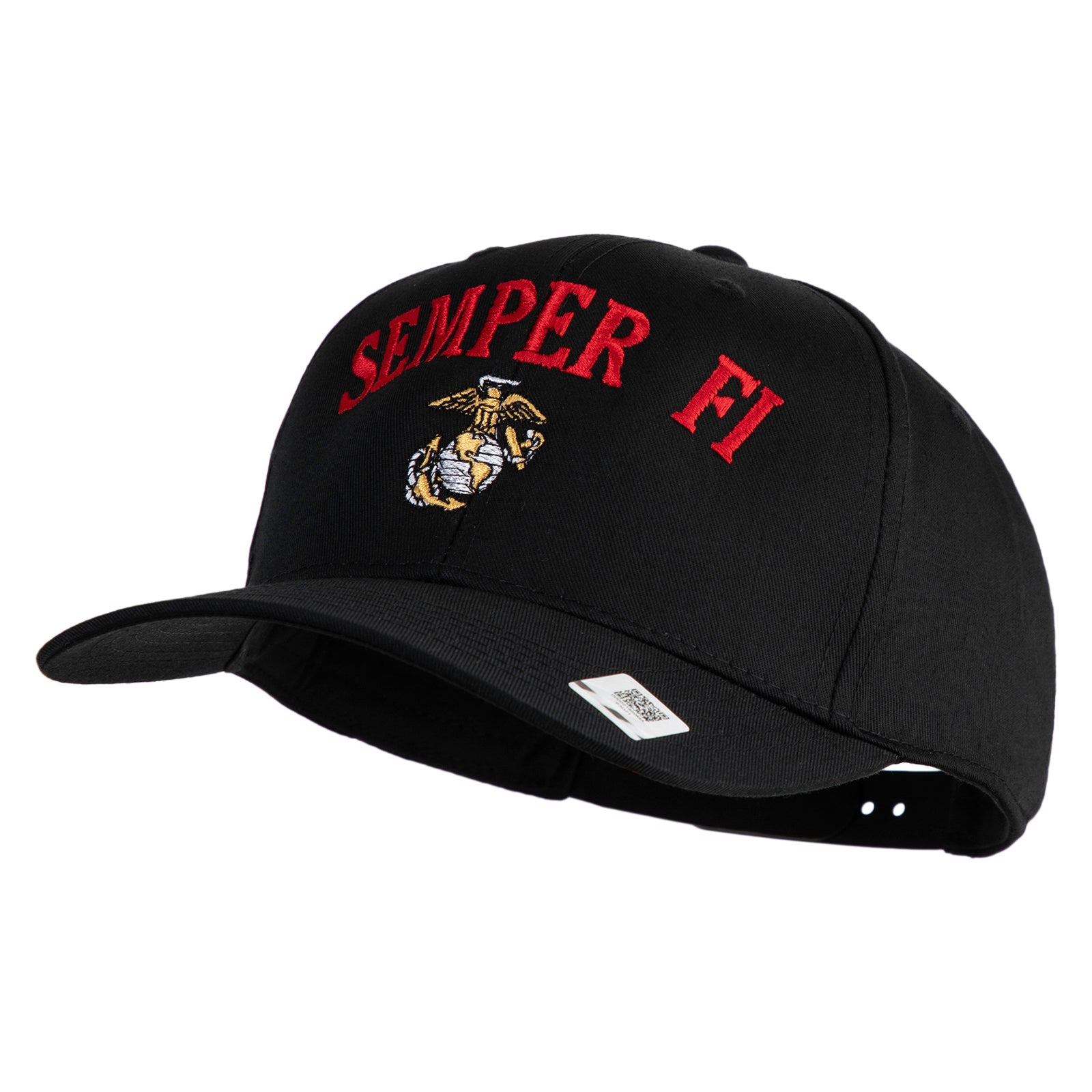 US Marine Semper Fidelis Design Embroidered Solid Cotton Twill Pro Style Cap - Black OSFM