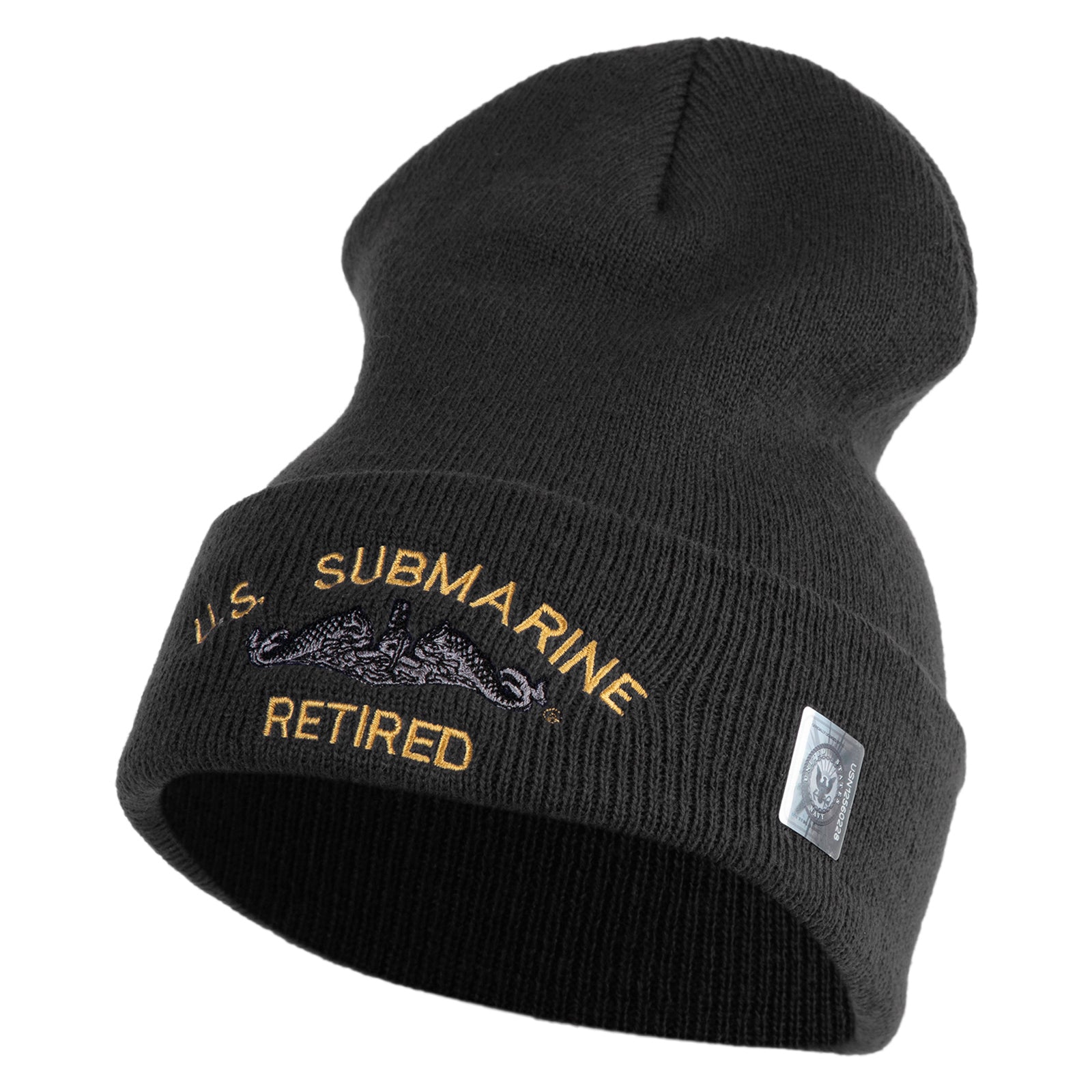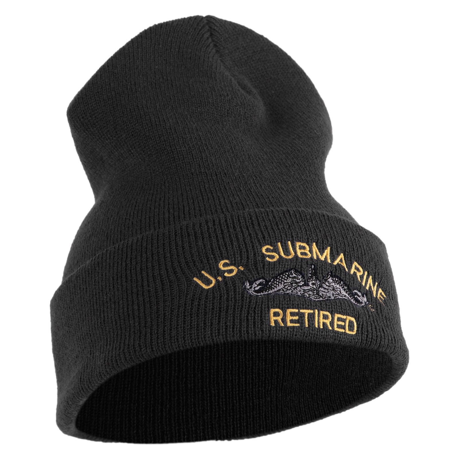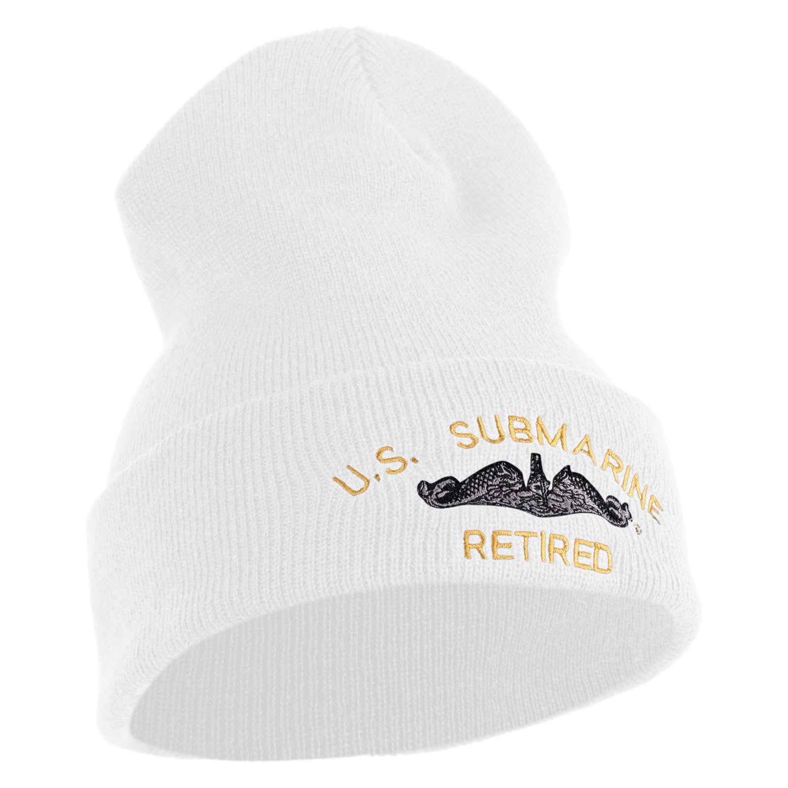 Title, US Submarine Retired Military Embroidered 12 inch Cuffed Knit YP Long Beanie