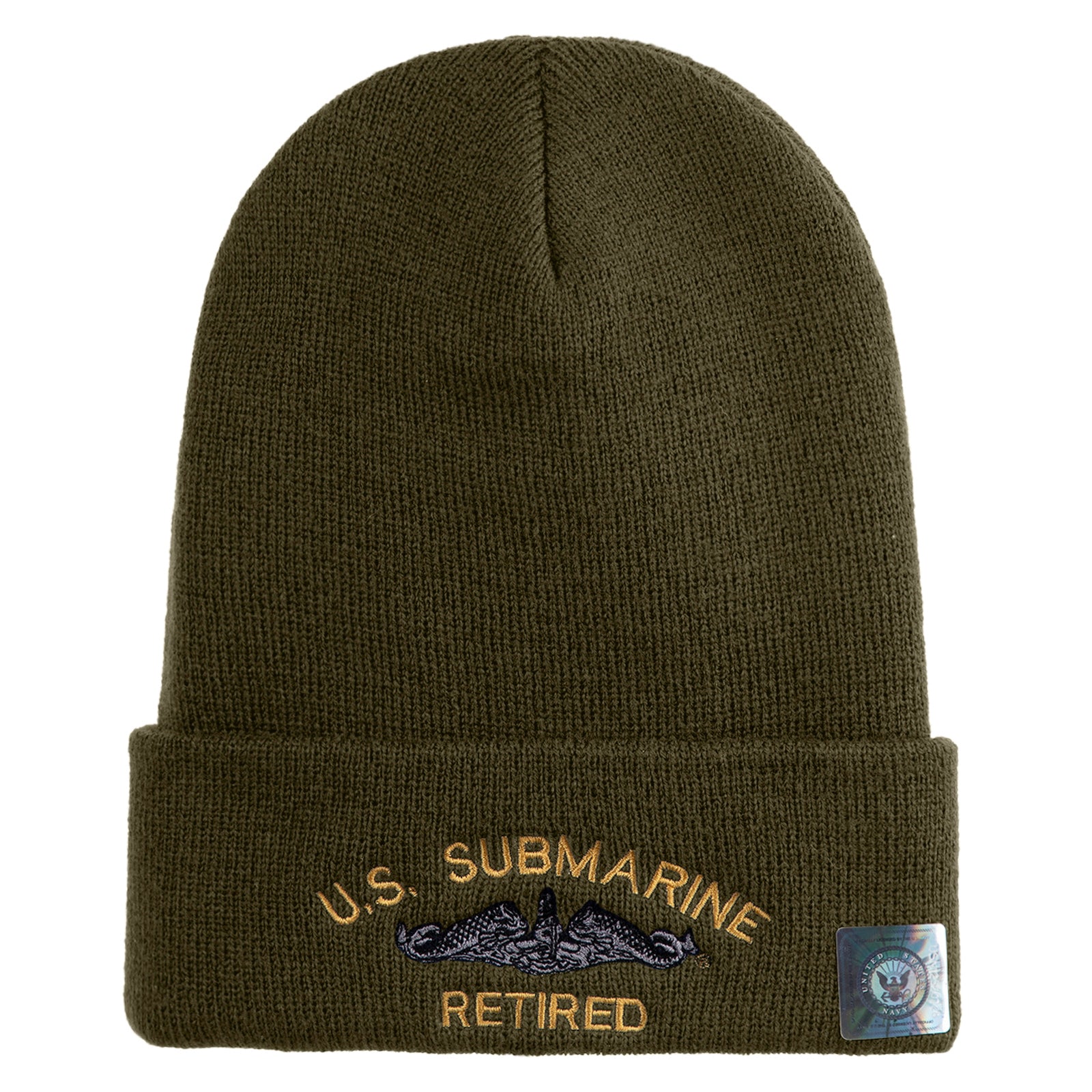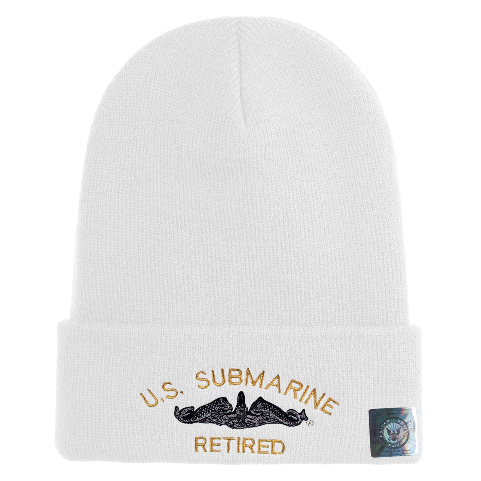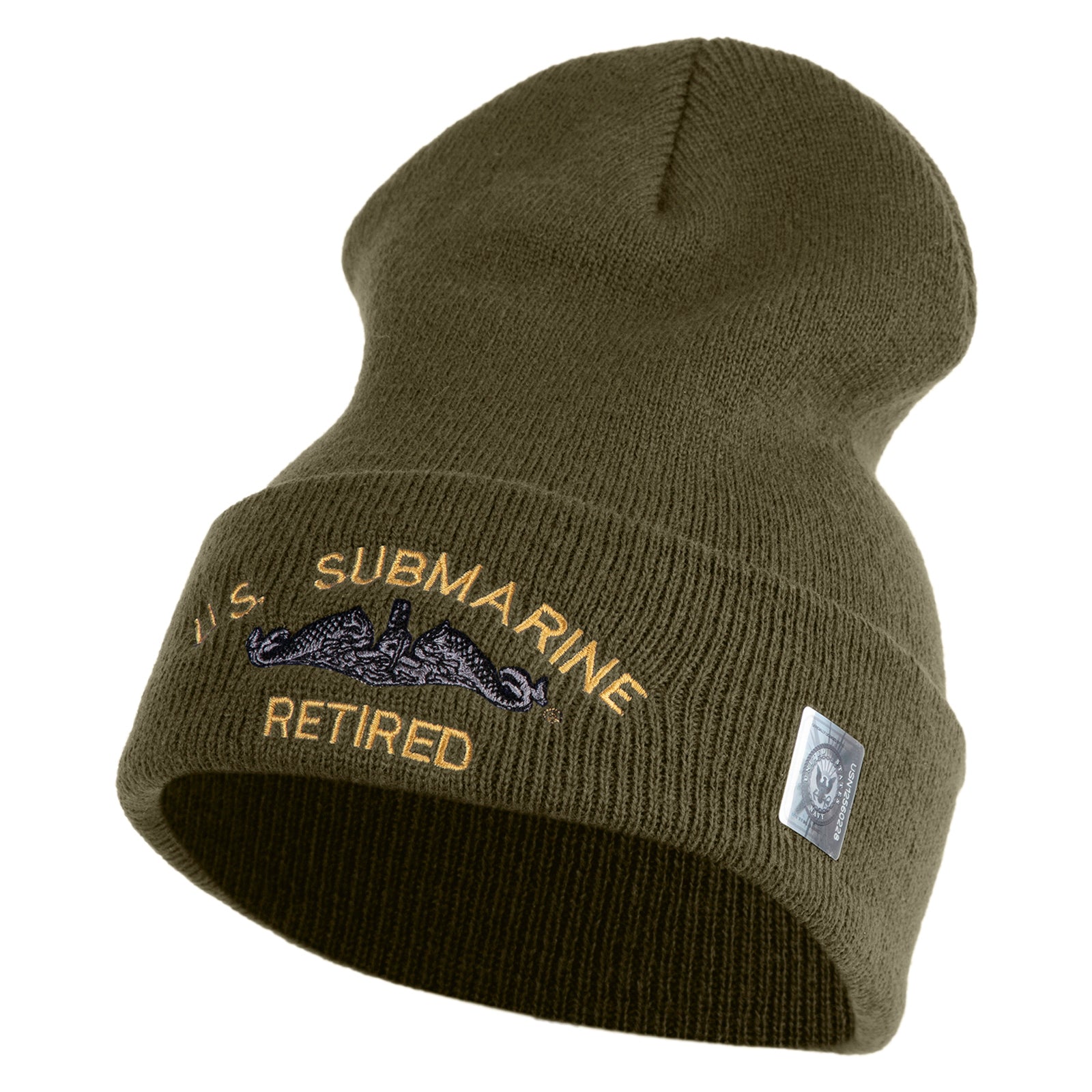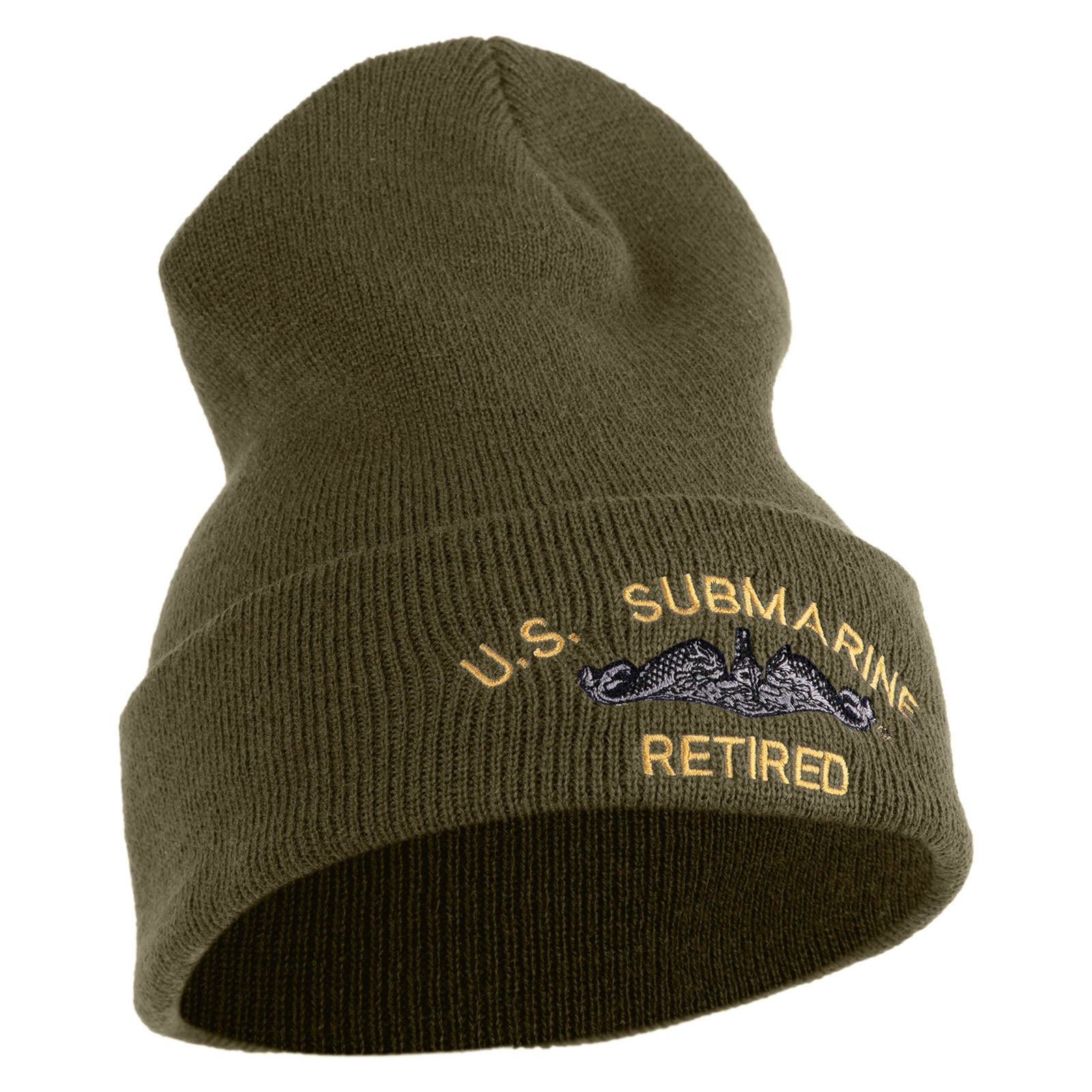 Title, US Submarine Retired Military Embroidered 12 inch Cuffed Knit YP Long Beanie