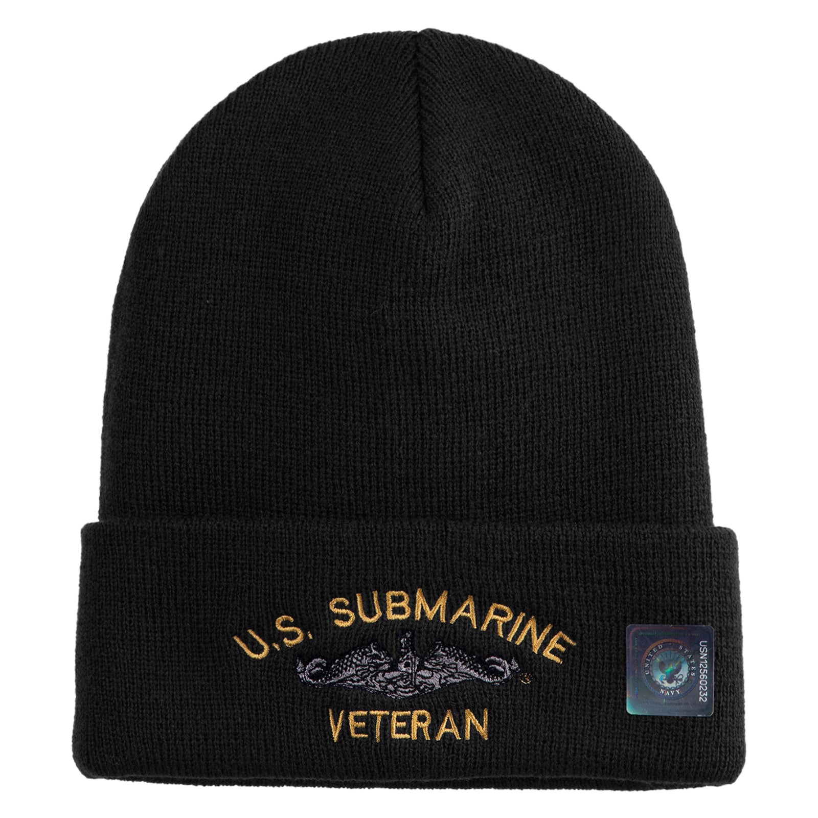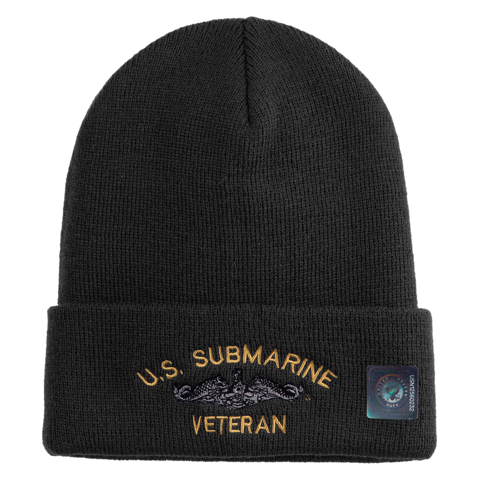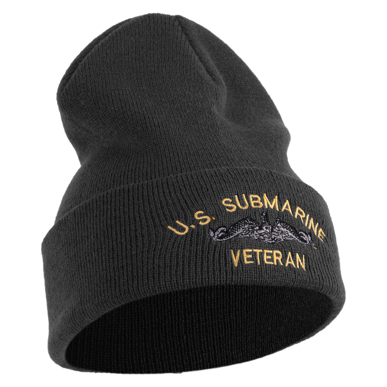 US Submarine Veteran Military Embroidered 12 inch Cuffed Knit YP Long Beanie - Black OSFM