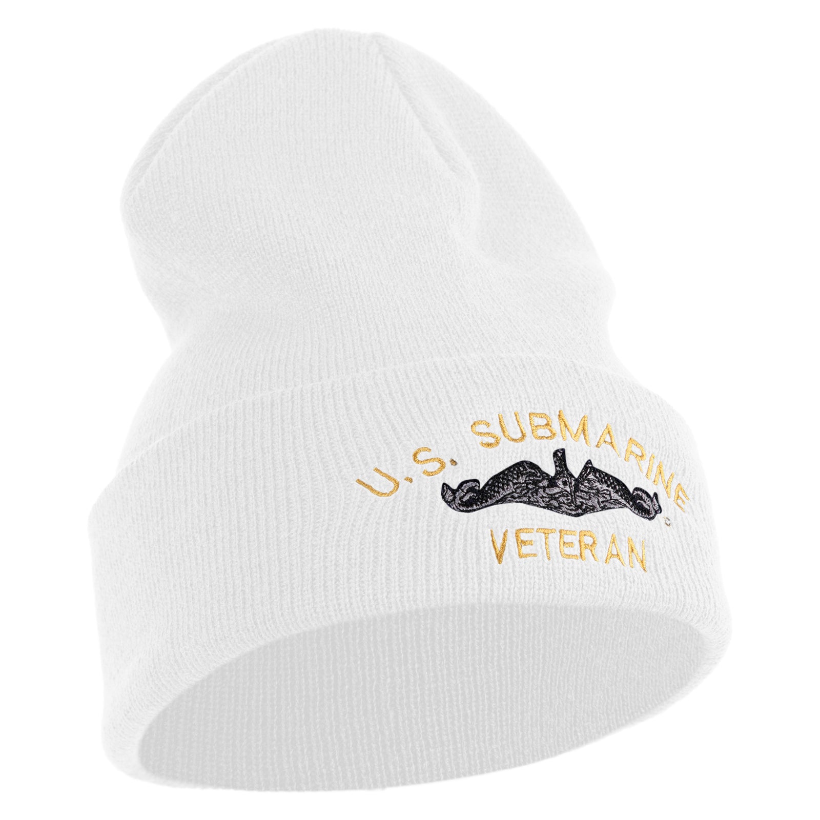 Title, US Submarine Veteran Military Embroidered 12 inch Cuffed Knit YP Long Beanie