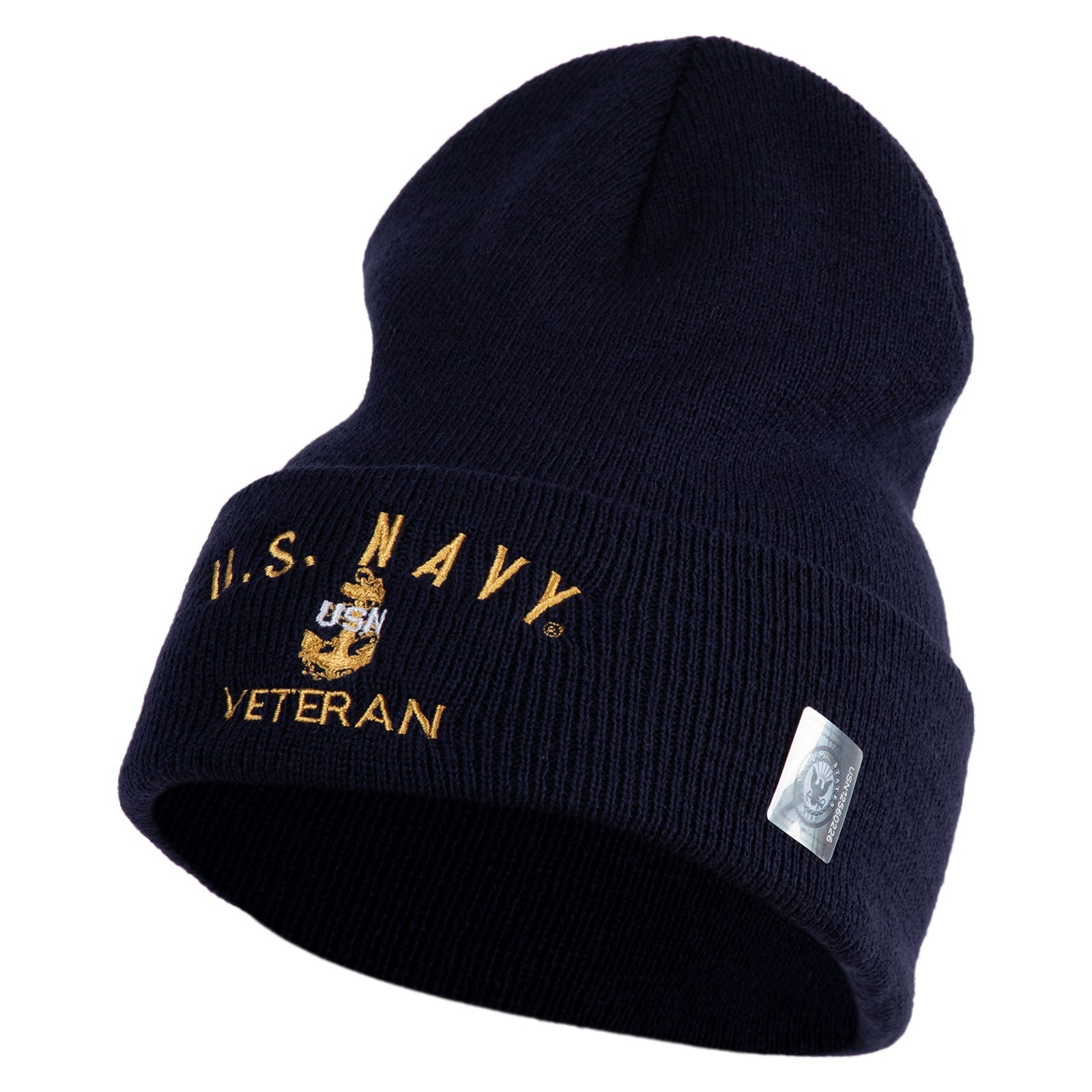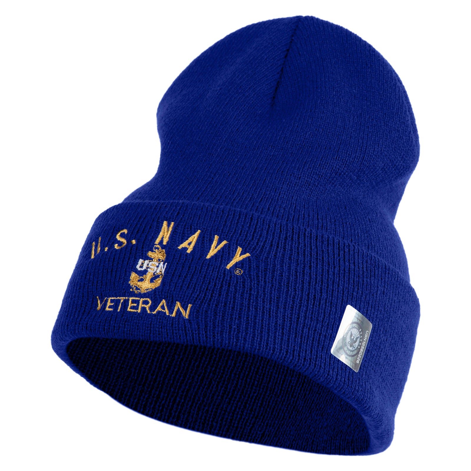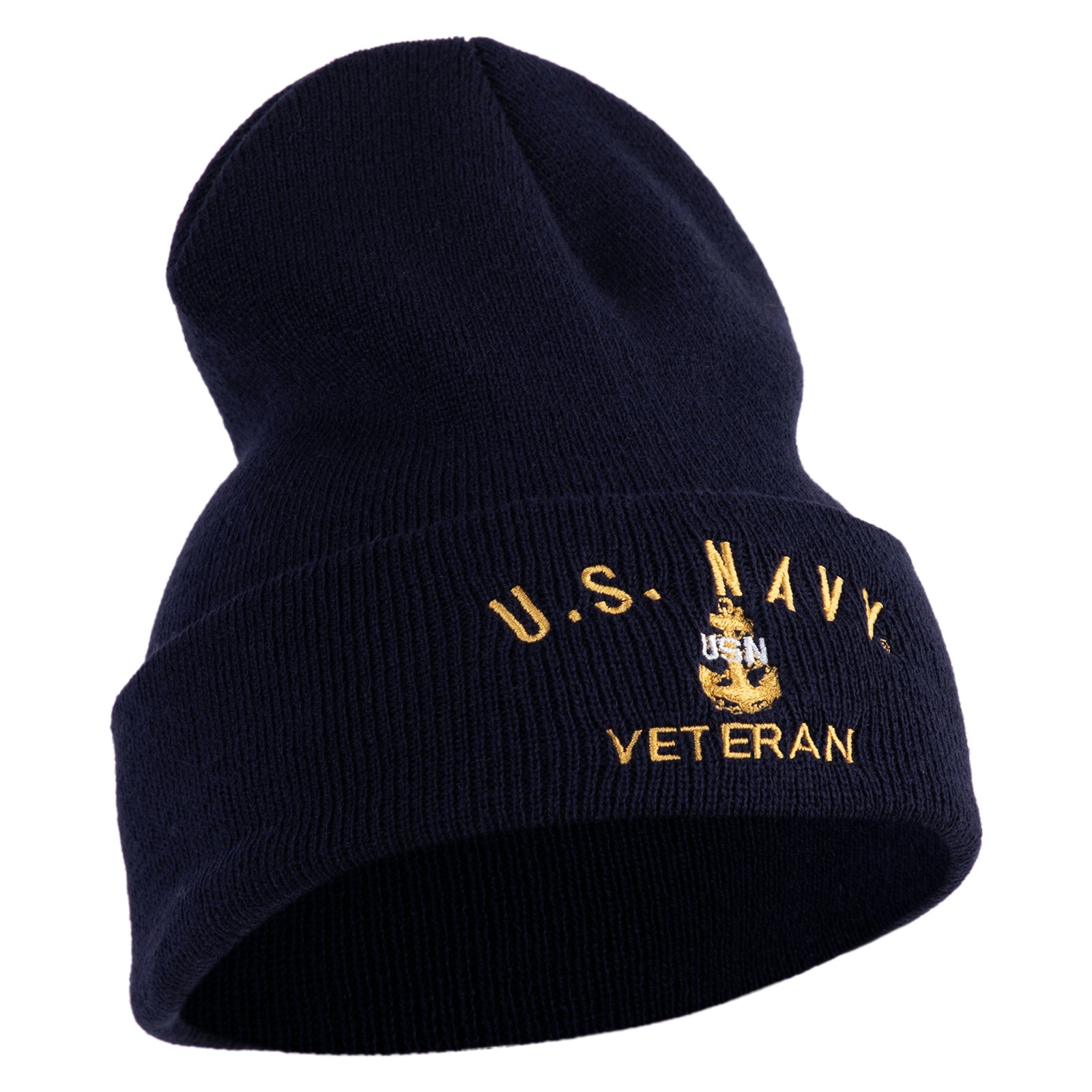 Navy USN Veteran Logo Embroidered 12 inch Cuffed Knit YP Long Beanie