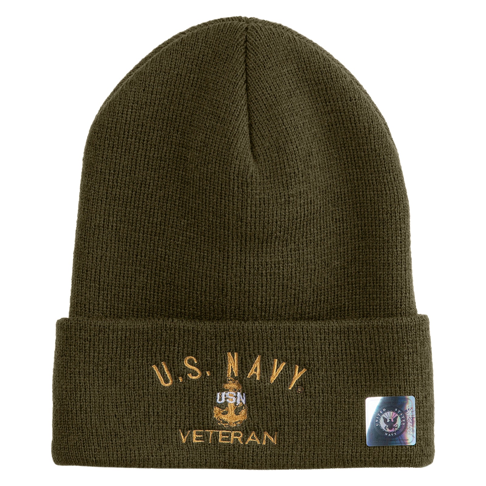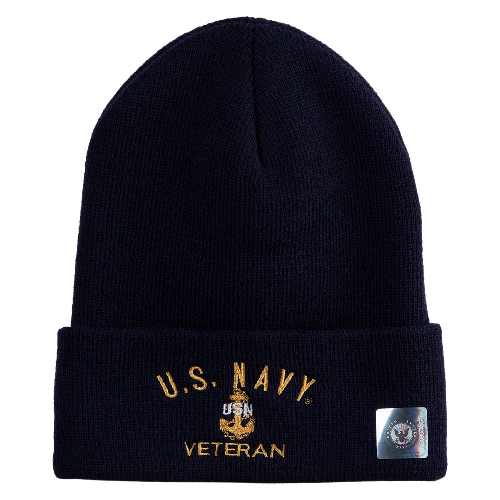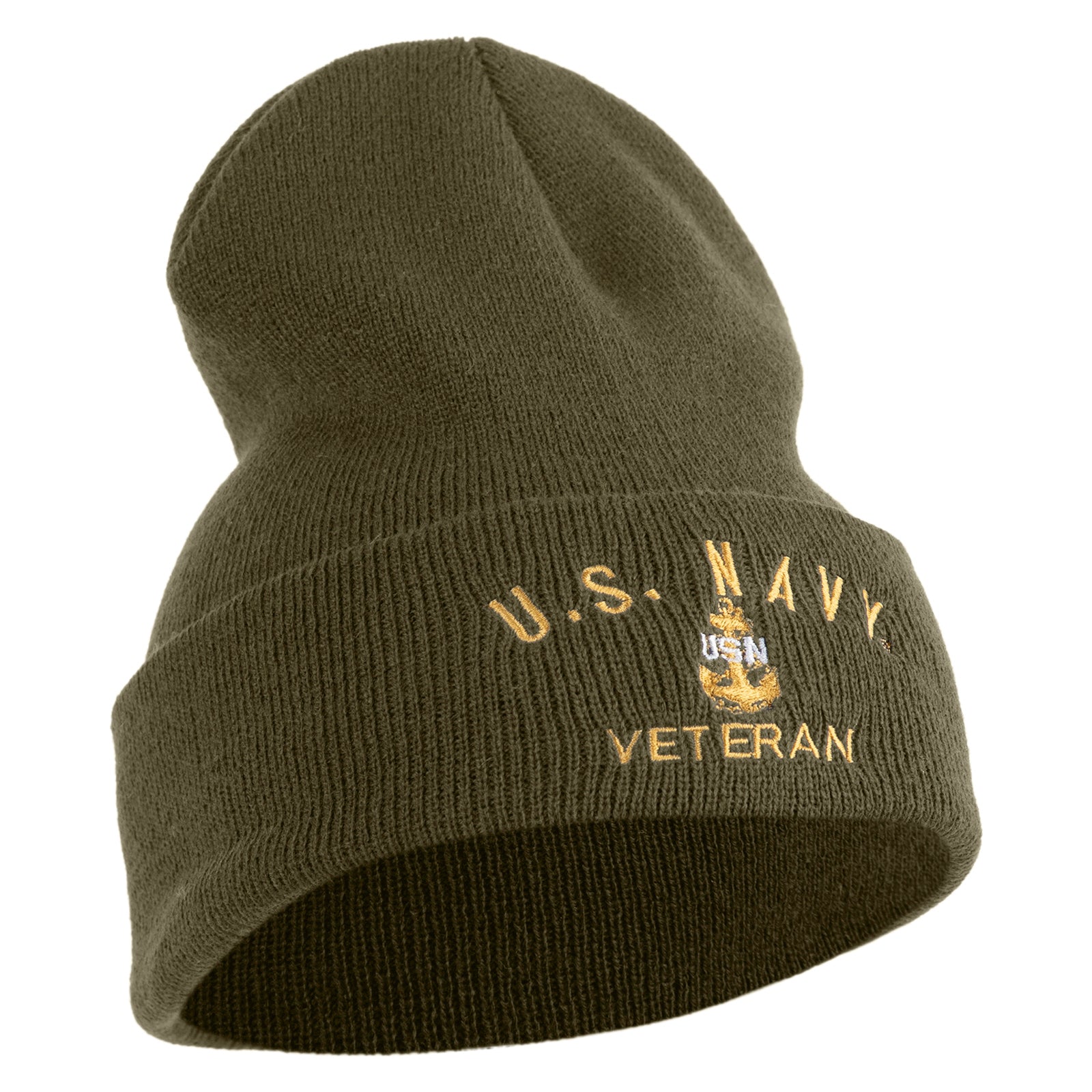 Navy USN Veteran Logo Embroidered 12 inch Cuffed Knit YP Long Beanie
