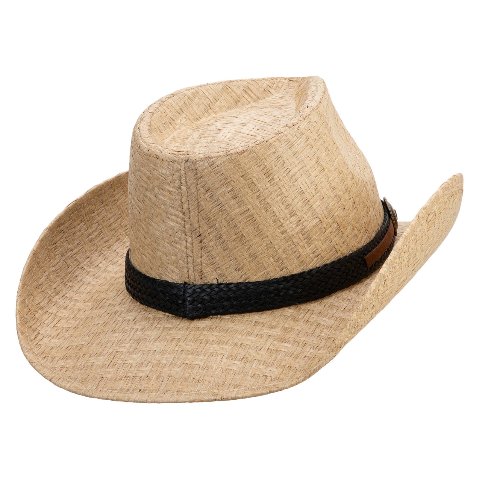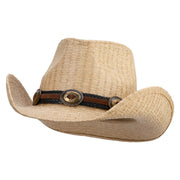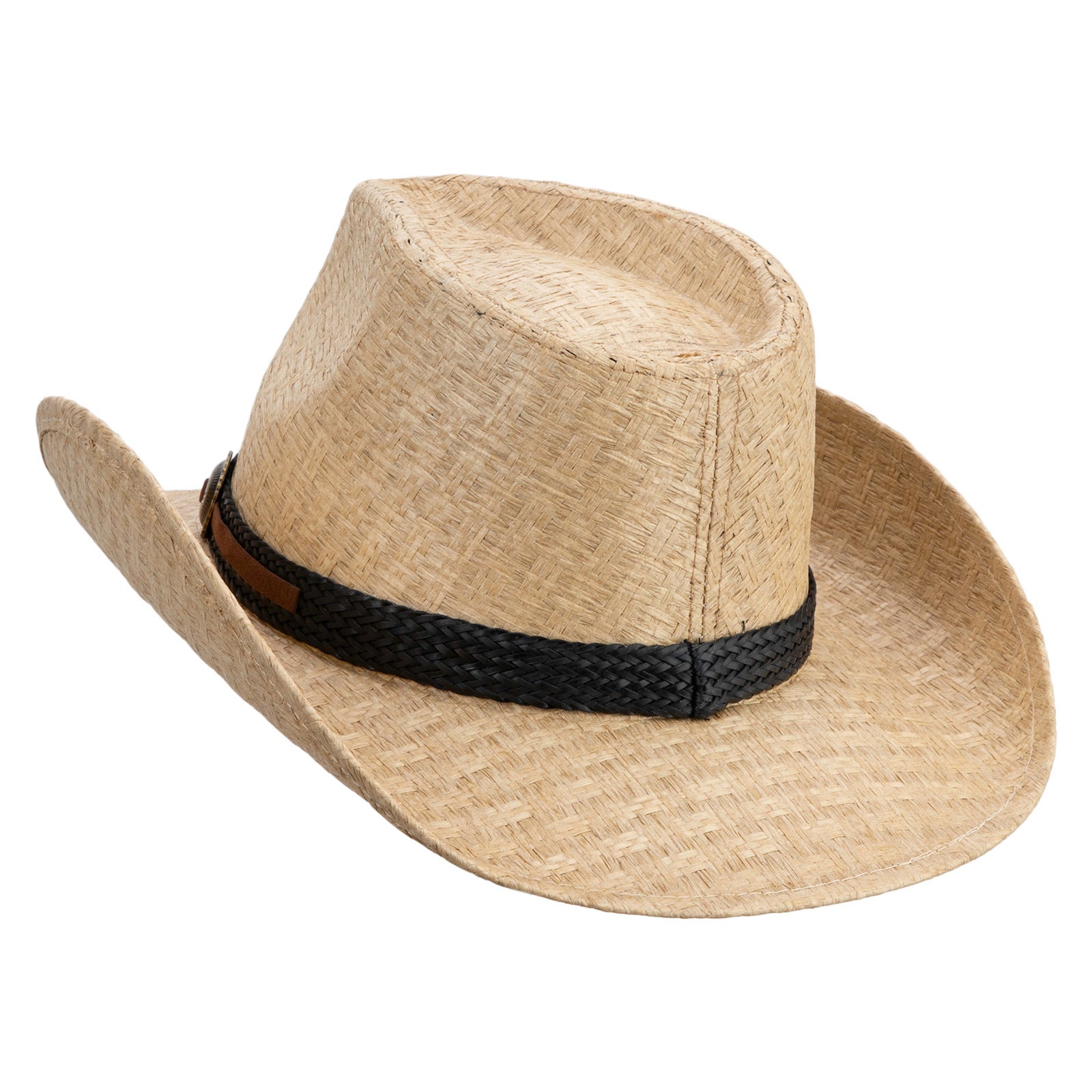 UPF 50+ Natural Pressed Straw Cowboy Hat with Concho Band