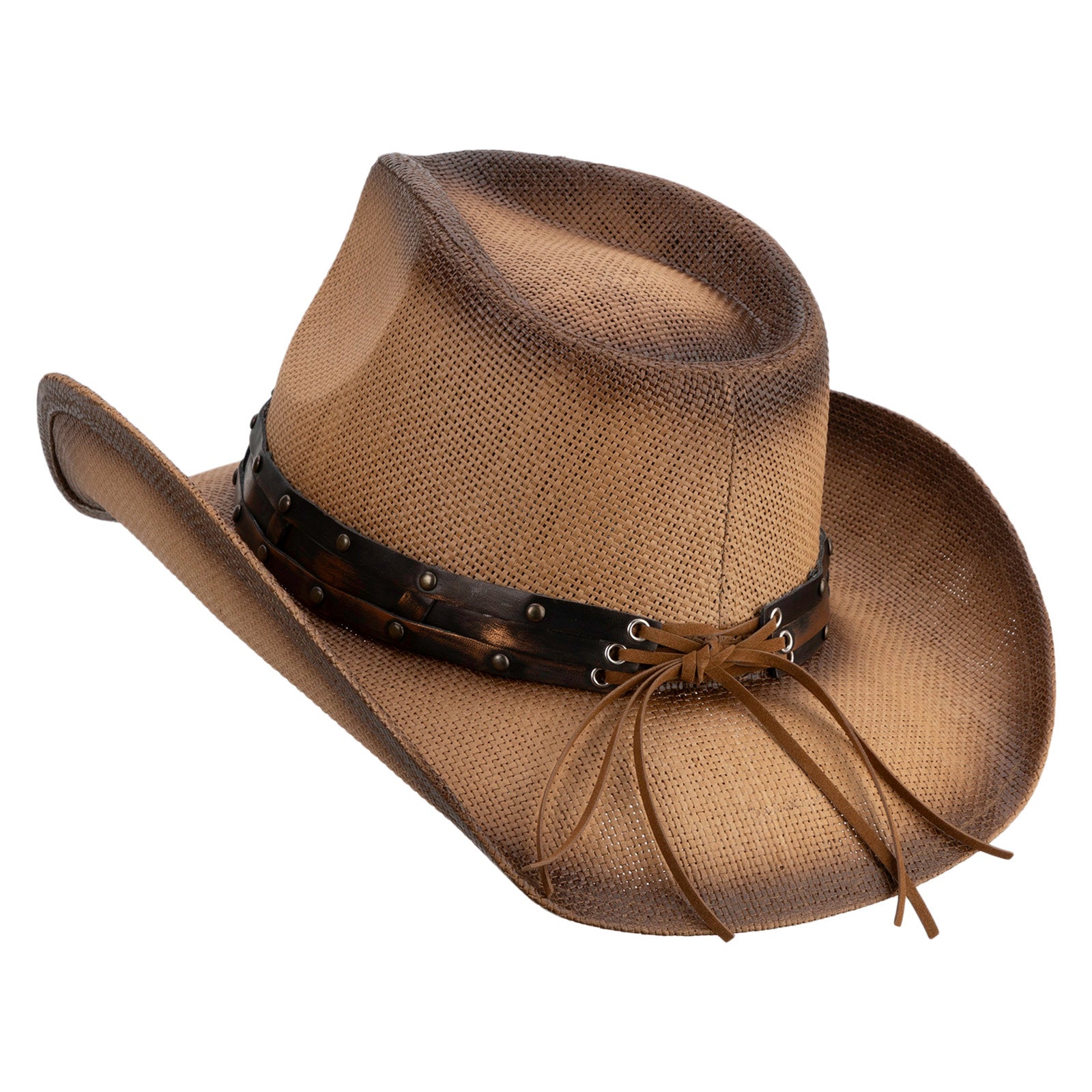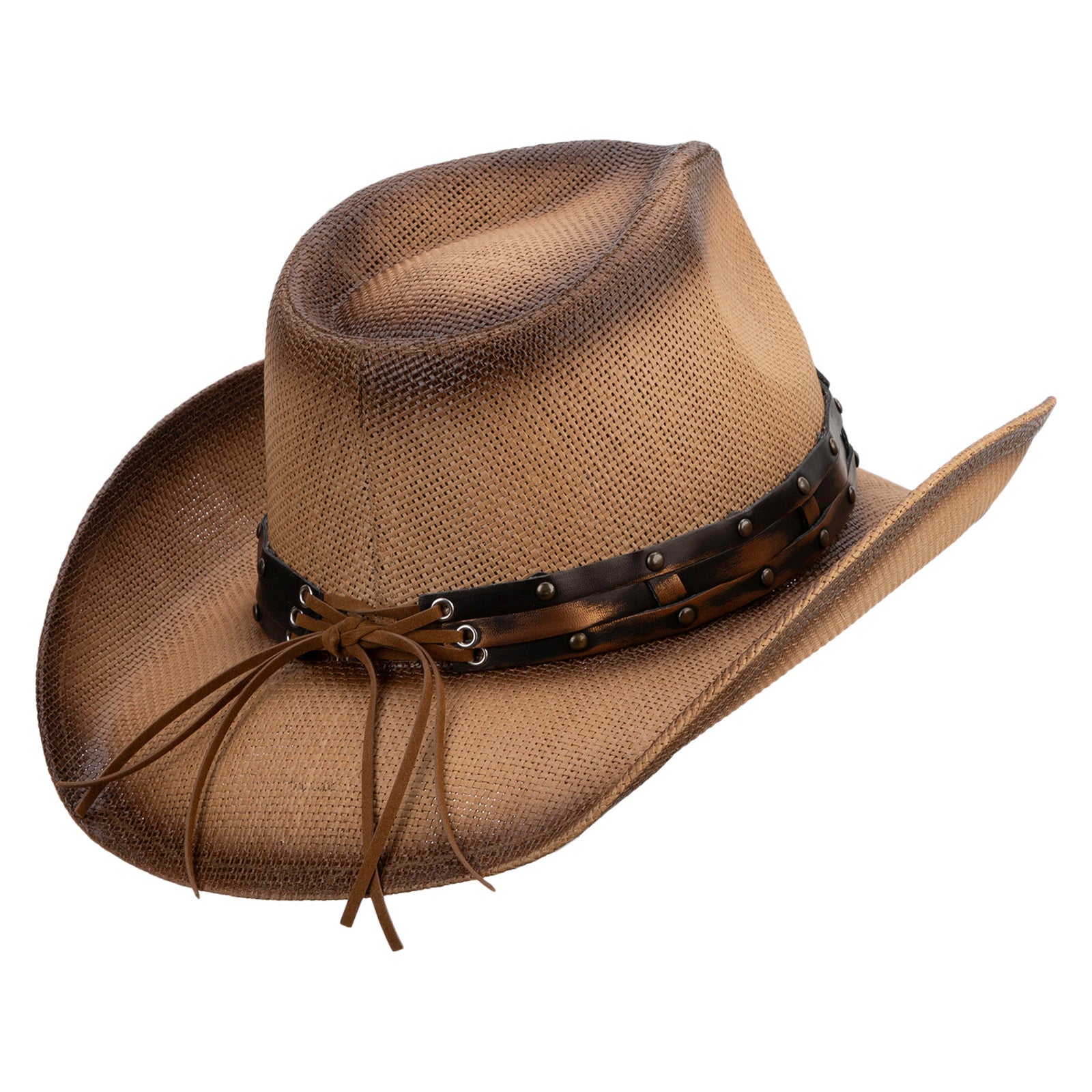 UPF 50+ Natural Straw 3D Sherrif Buckle Cowboy Hat - Brown OSFM