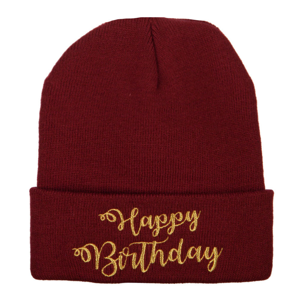 Glitter Happy Birthday Embroidered Knitted Long Beanie