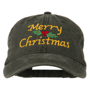 Merry Christmas Mistletoe Embroidered Washed Dyed Cap