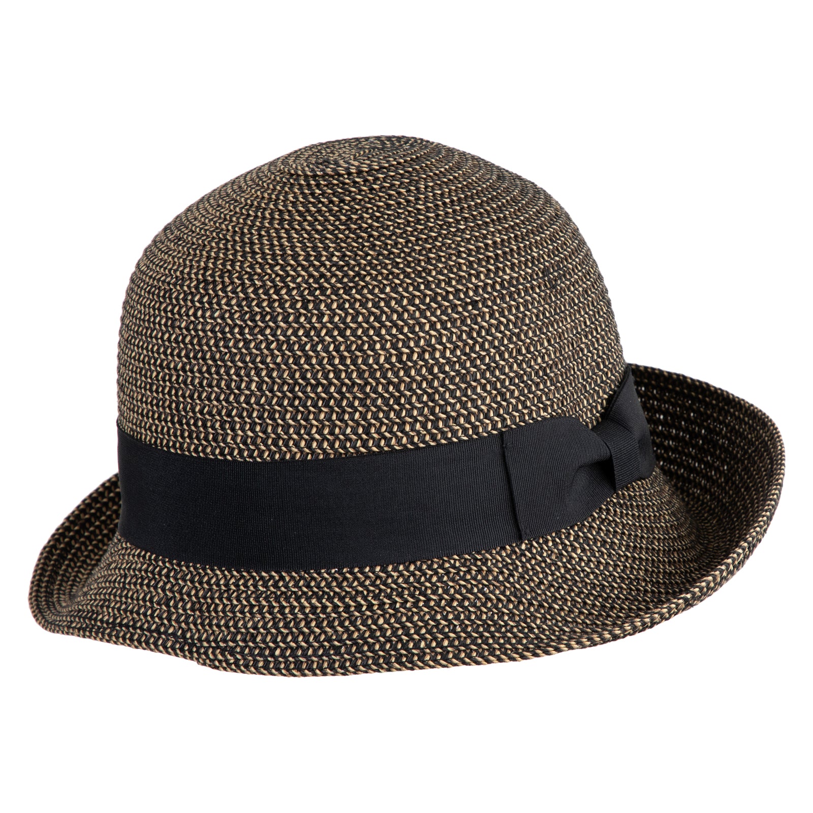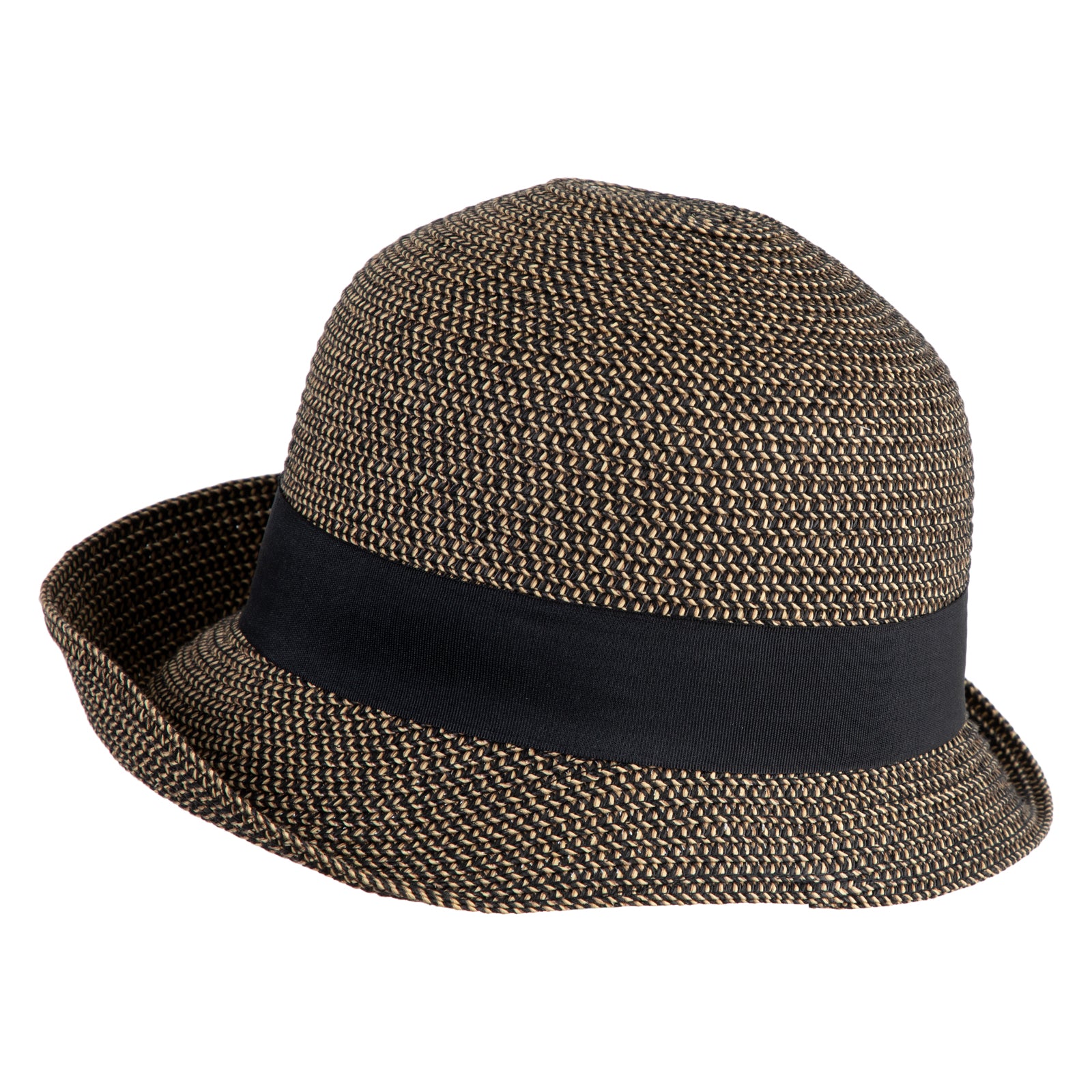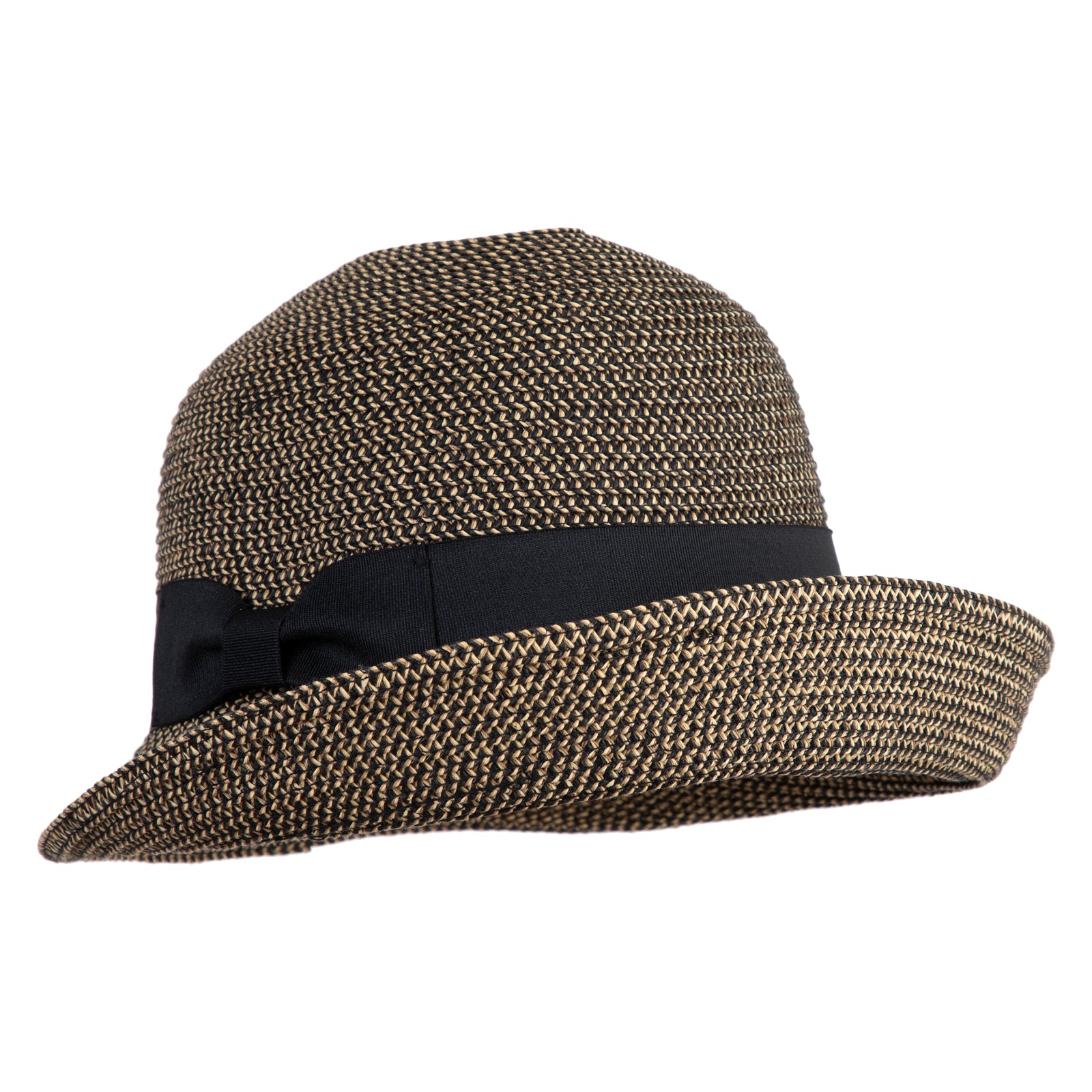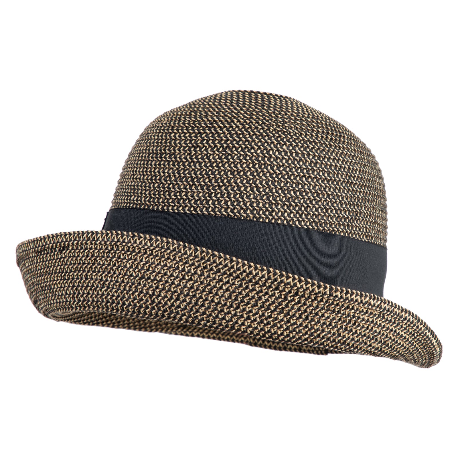 UPF 50+ Women's Braid Ribbon Band Cloche Hat - Black Tweed OSFM