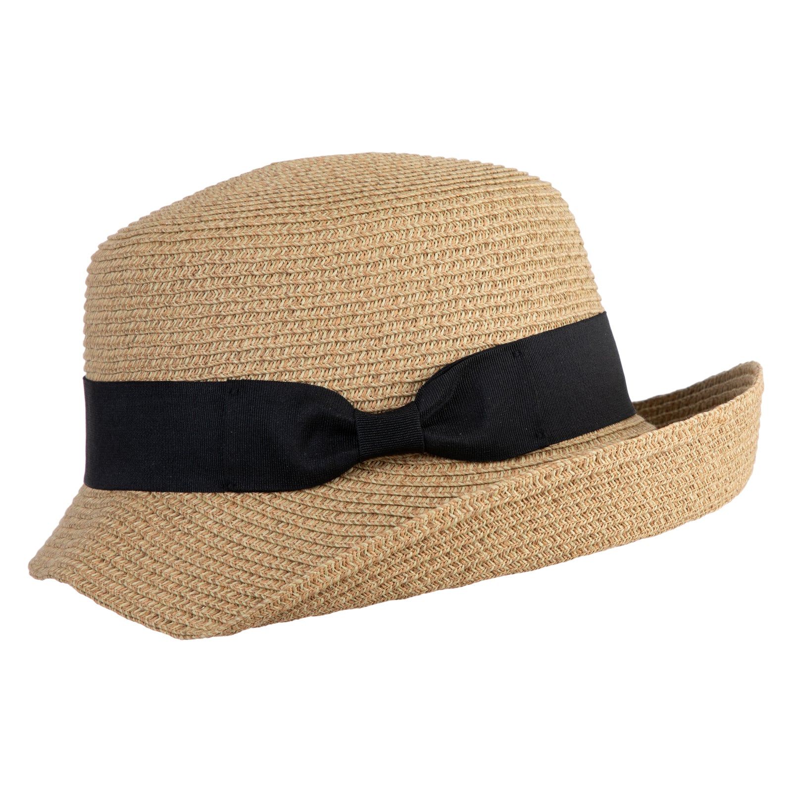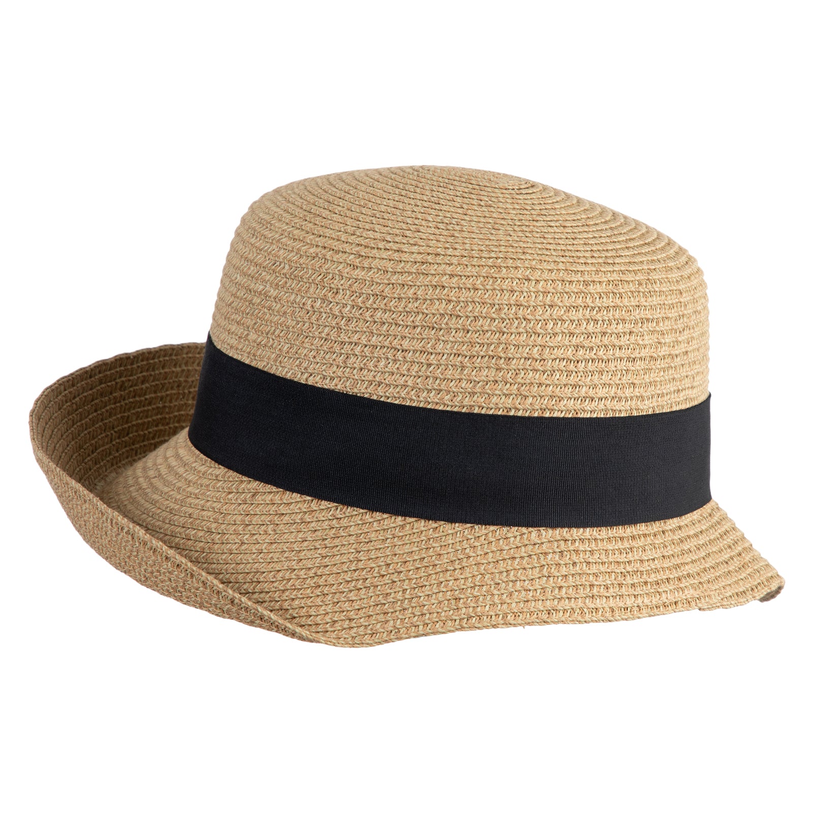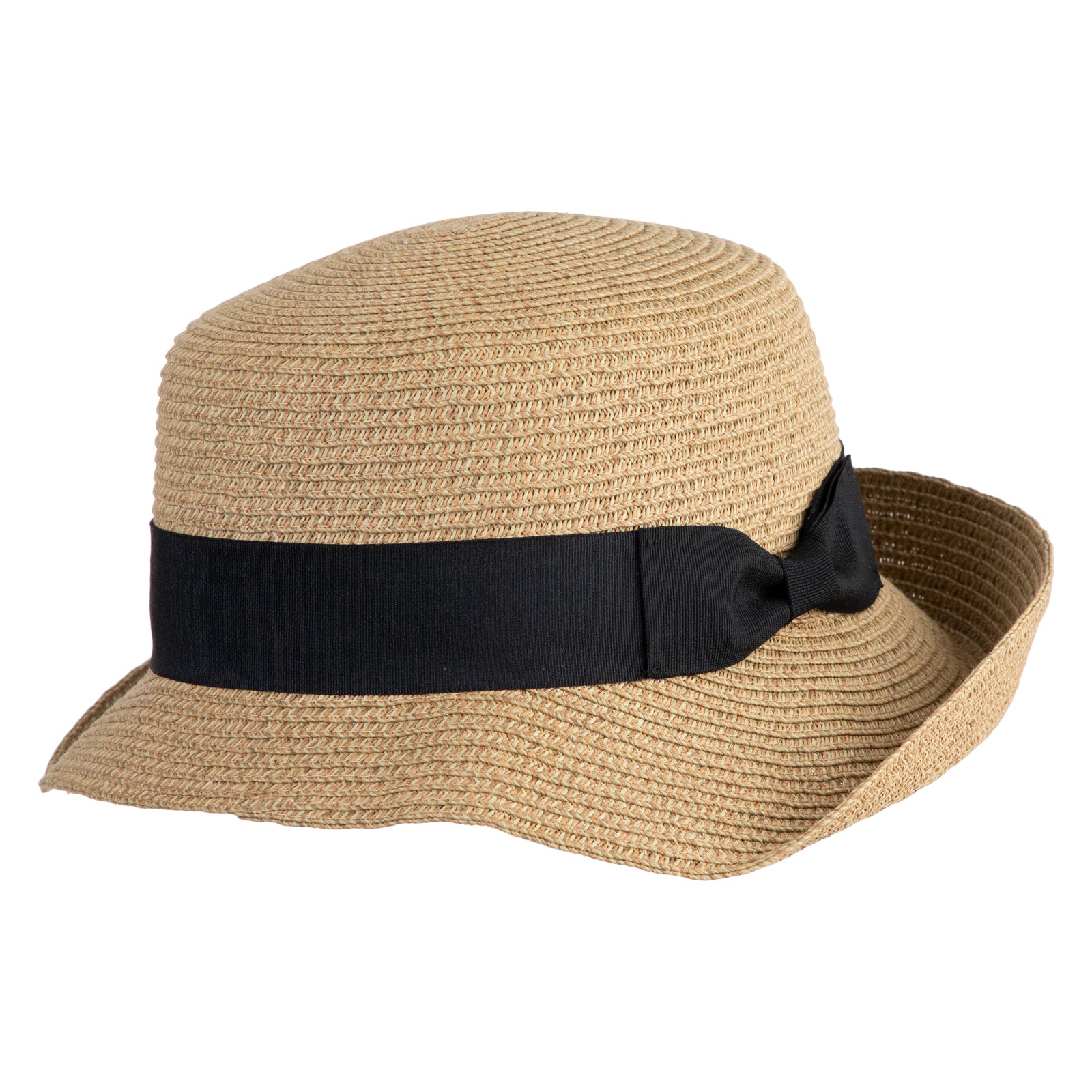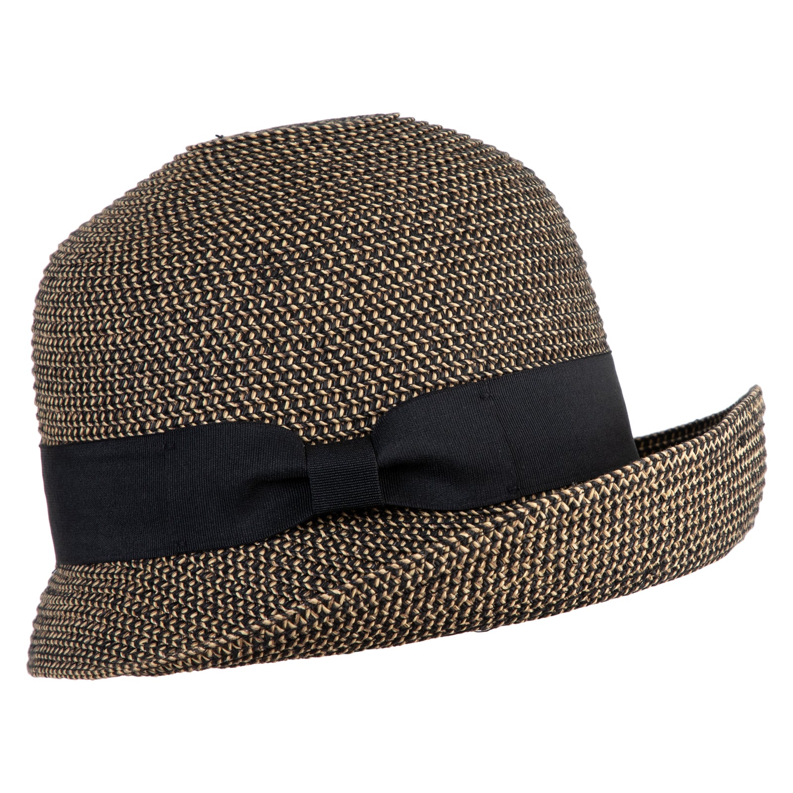 UPF 50+ Women's Braid Ribbon Band Cloche Hat - Black Tweed OSFM