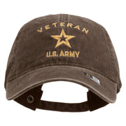 Title, Licensed U.S. Army Veteran Military Embroidered Washed Solid Pigment Dyed Cotton Twill Brass Buckle Cap