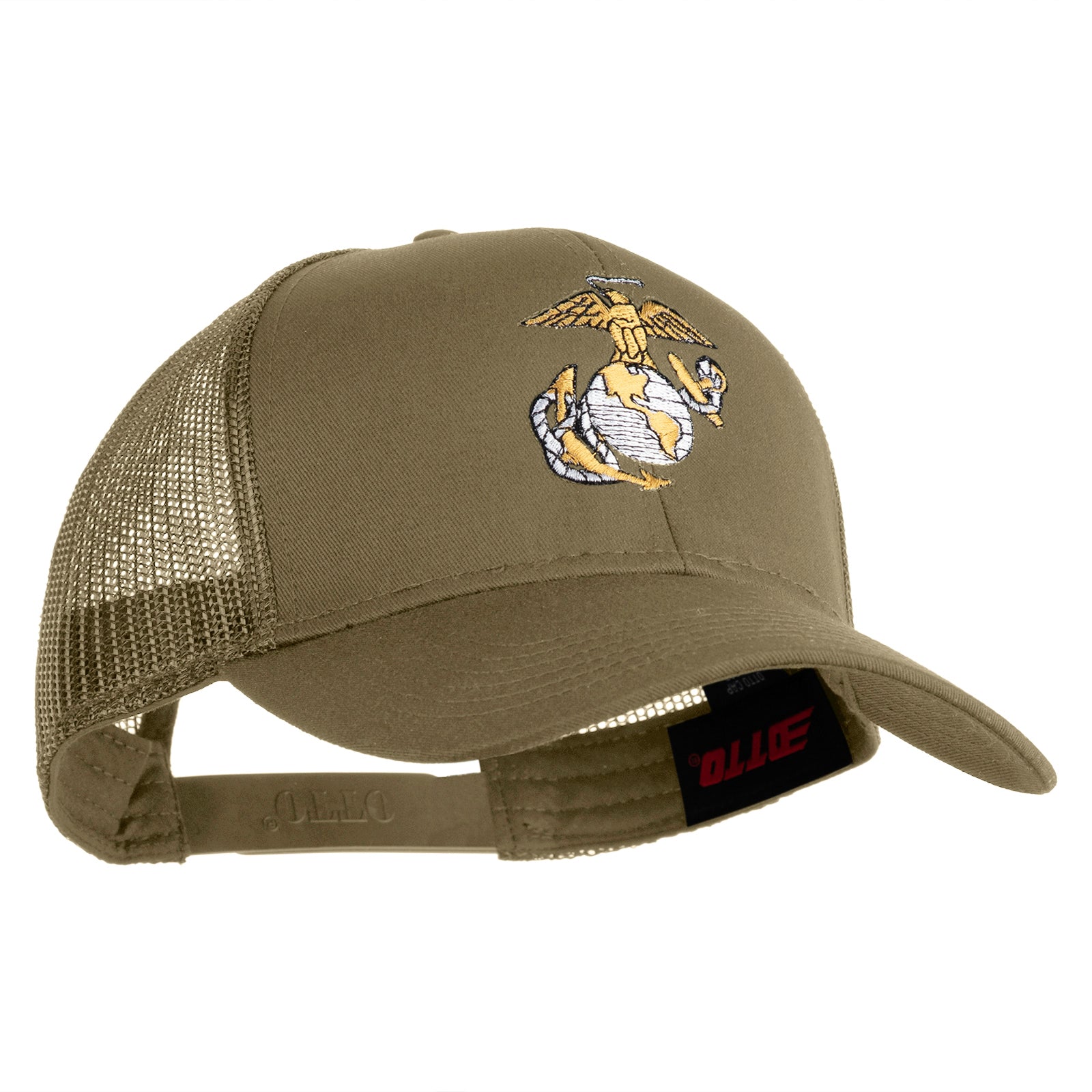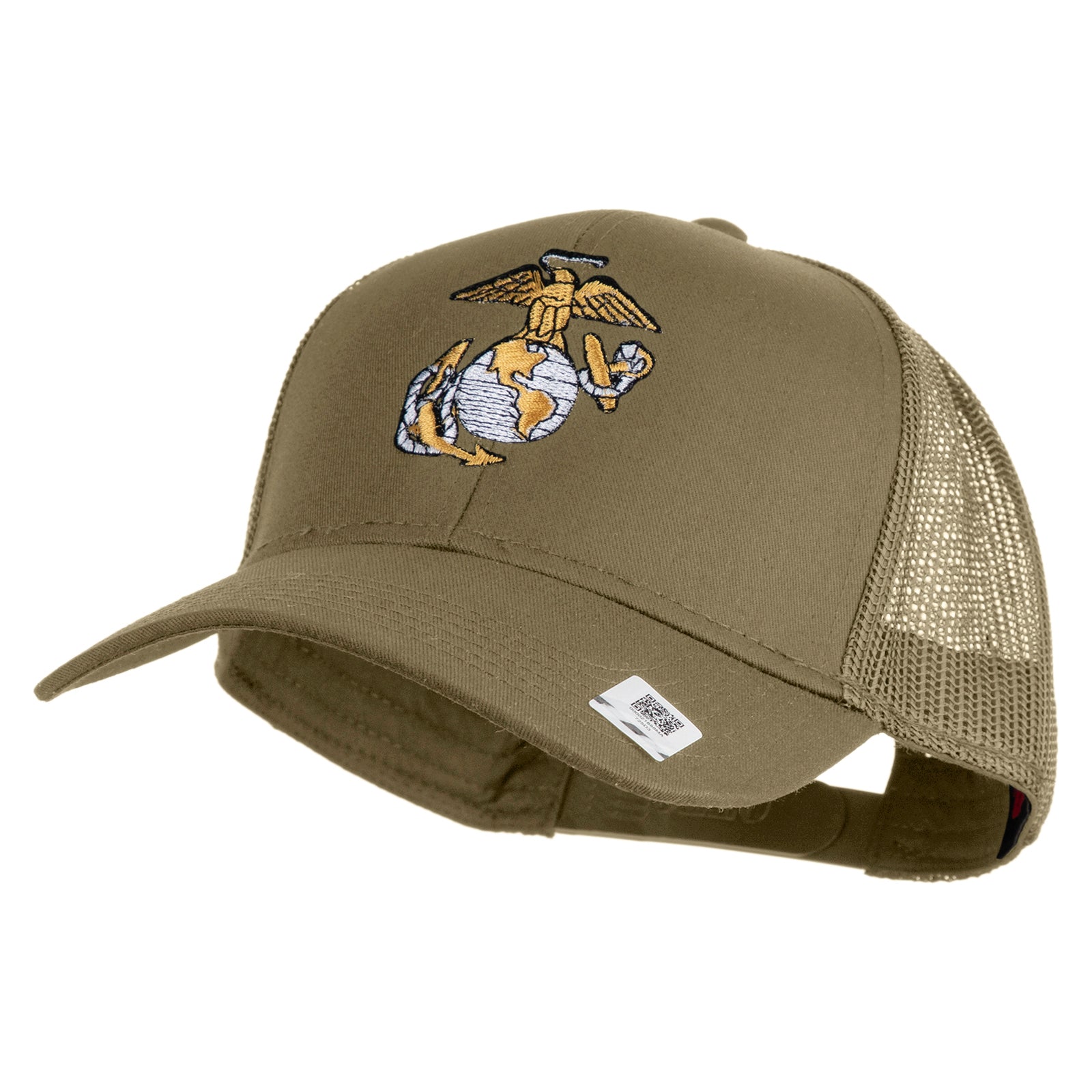 US Marine Corps Emblem Embroidered Solid Cotton Twill Mesh Prostyle Cap - Khaki OSFM