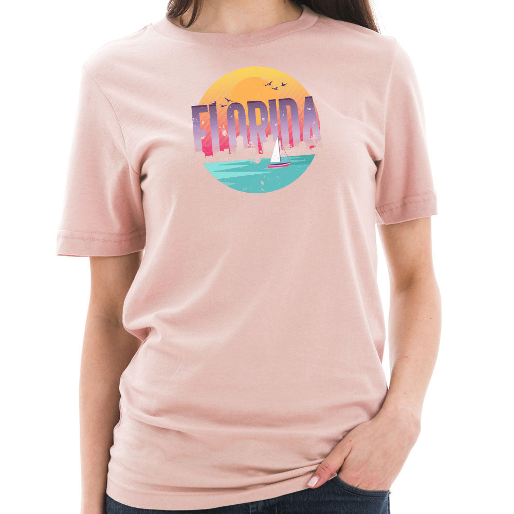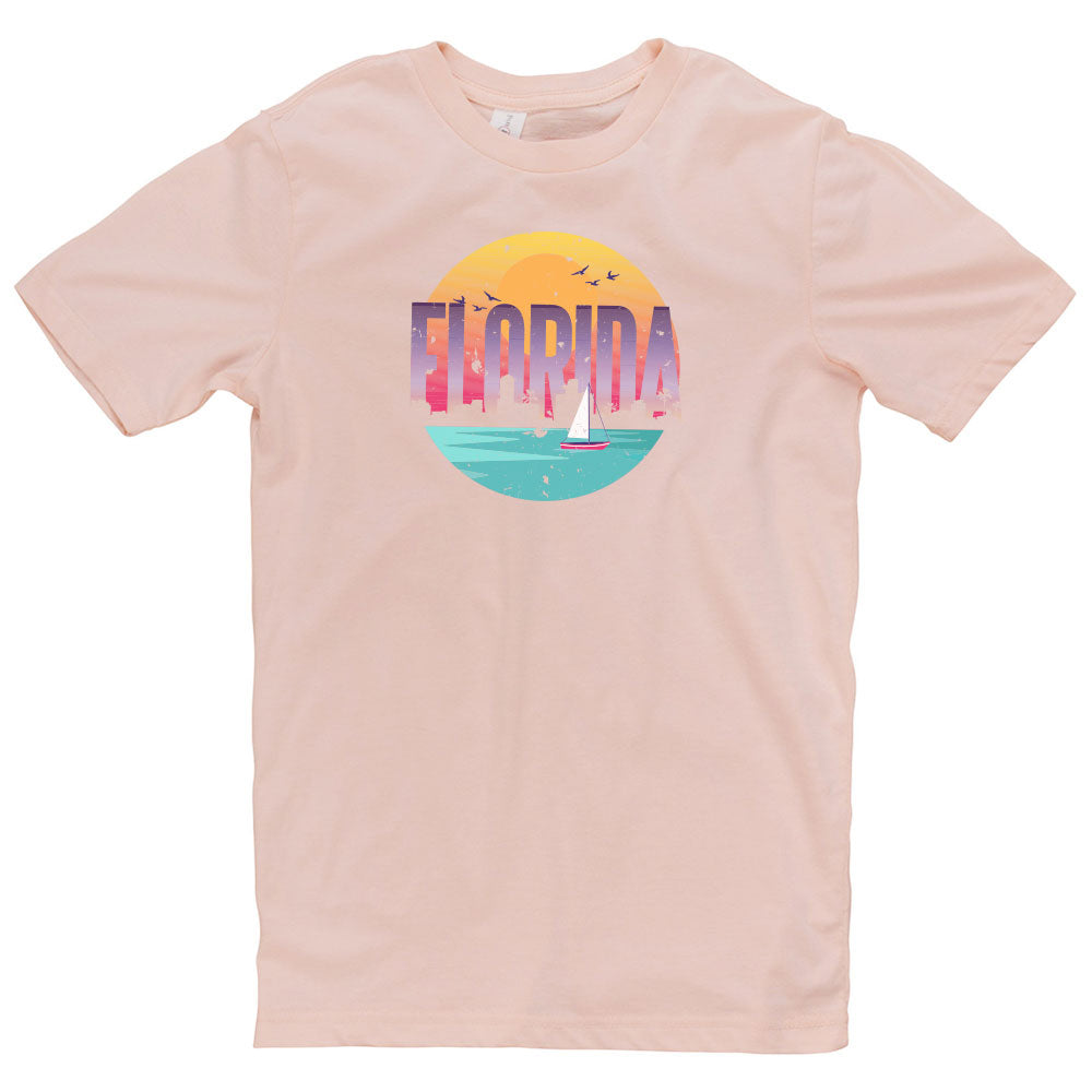 Vintage Florida Sunset Graphic Design Short Sleeve Cotton Jersey T-Shirt